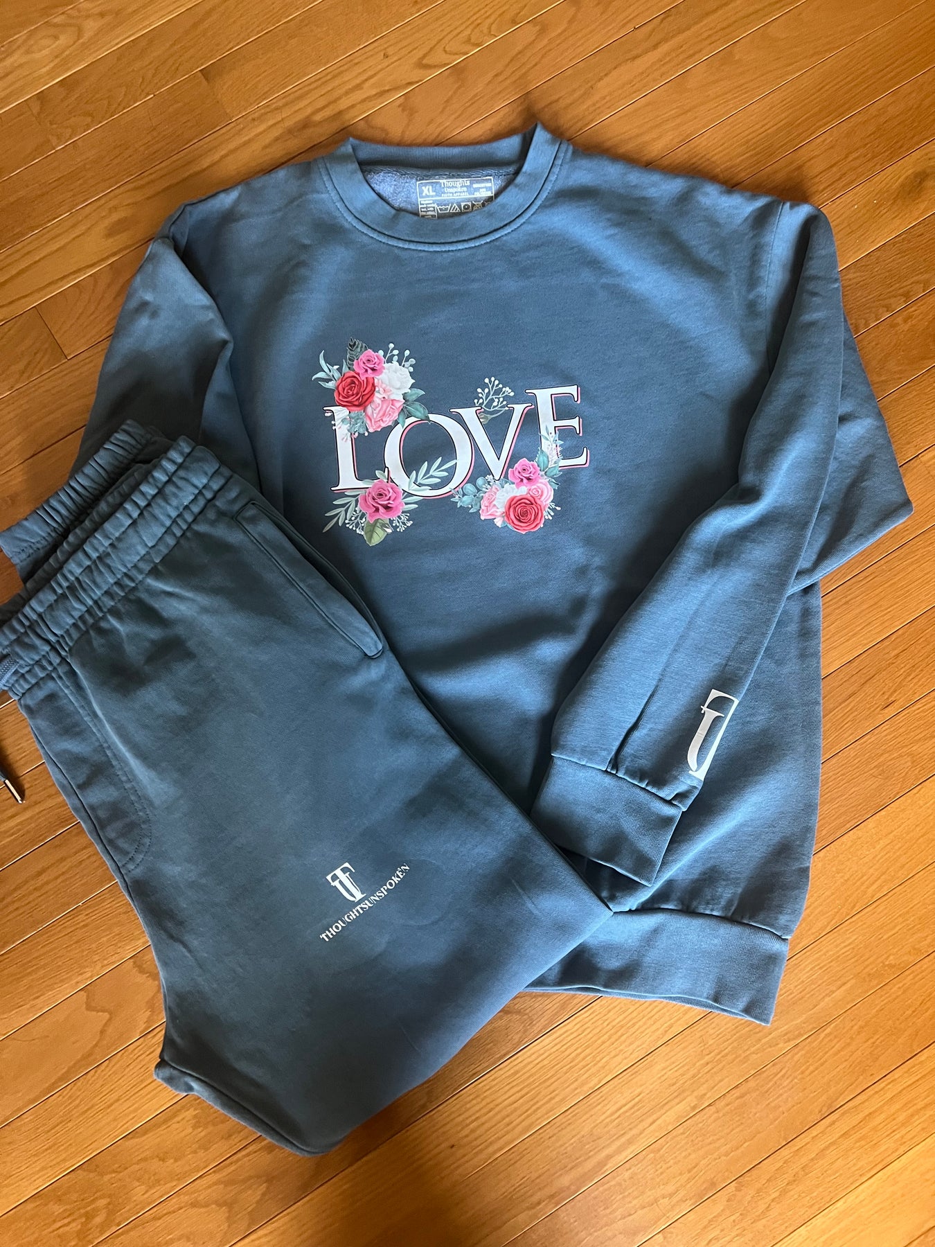 Wrap yourself in warmth, comfort, and style with our Love in Bloom Jogger set.  Designed with intention, this cozy set is crafted to remind you that you are loved--inside and out. The top features a soft, warm interior and a beautifully "LOVE" floral graphic that brings a touch of elegance to your everyday wear.